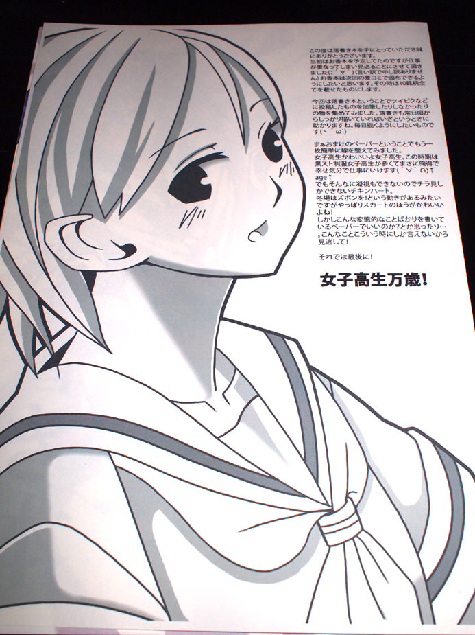 30 December C81直前更新2 ということで直前更新2です!深谷トーナです。今回はおまけペーパーの話。おまけペーパー作ったよ!以上!(オイッまぁこれもツイピクで上げたものをパパっときれいにしただけですが。当日は本を買っていただいた方にこのペーパーを付けさせて頂きます。一応既刊を買っていただけた方にもお渡しする予定ですが思いっきり落書き本を買っていただいた人向けの文章になっちゃっています(;´∀`)そんなんですがもらっていただけると嬉しいですwとこんなところですかね。まだ準備が残っているのでこの辺で終わりにさせて頂きます。当日は是非よろしくお願いします!スペースは『メ-56a』です!それでわ!! PR